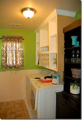 She recently re-did her laundry room. I mean if we need to do laundry, it needs to be in a cute room…….right? Who could possibly match socks in the BEFORE?